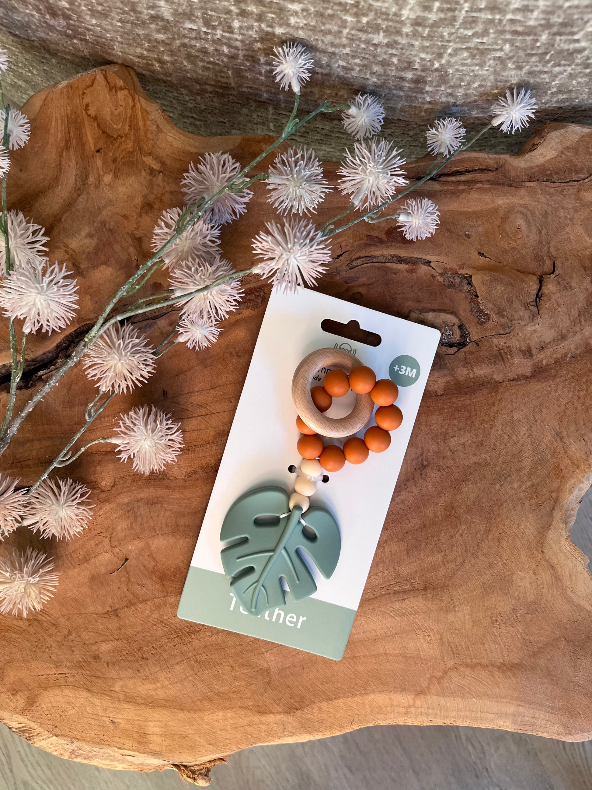 Handgemaakte bijtring met zachte kleuren. Deze siliconen bijtring met mooie heldere kleuren trekt zeker de aandacht van je kleintje, en is handig vast te pakken. De gekleurde ring is gemaakt van baby veilige siliconen kralen, en een houten bijtring van 5 cm groot. Begint je kleintje overal op te bijten en te kwijlen? Deze rammelaar/bijtring zorgt voor verlichting van pijn bij doorkomende tandjes.